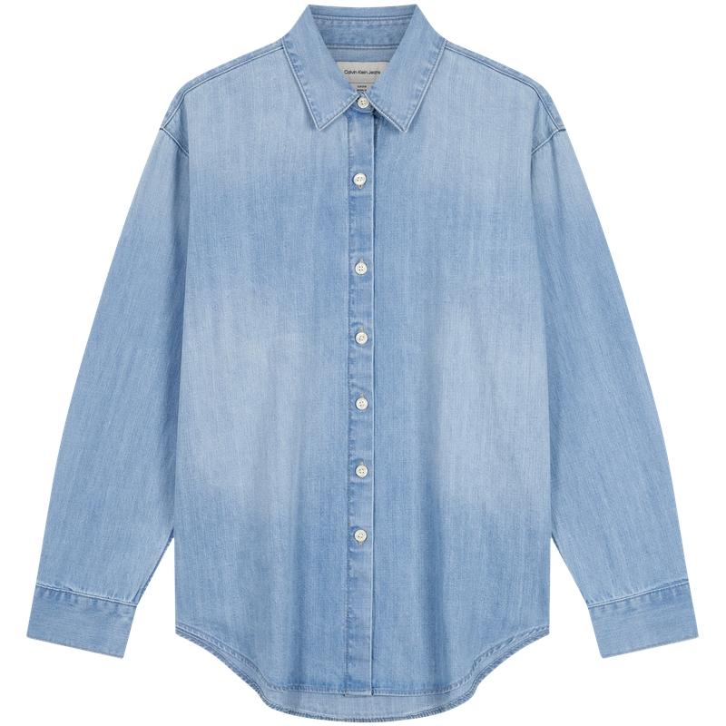 Calvin Klein American Vintage Casual Light Blue Washed Cotton Loose Denim Shirt Women Shirts 47D752G
