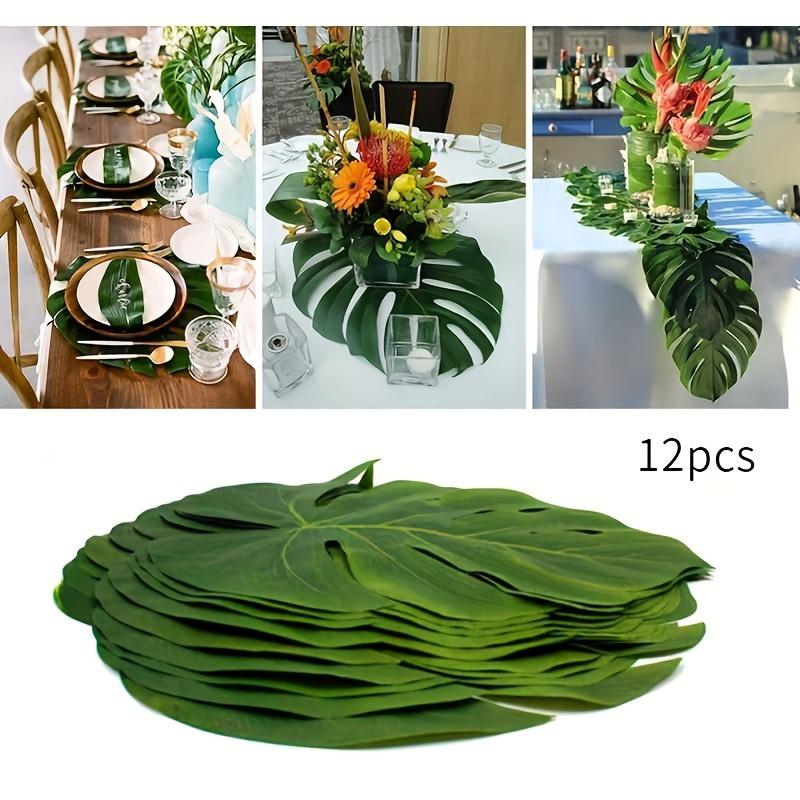 12Pcs Artificial Palm Leaves Hawaiian Luau Jungle Beach Theme Party Decor DIY Supplies for Birthday Holiday Home Wall Decor
