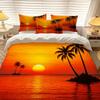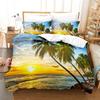 Tropical Landscape Polyester Duvet Cover Sets King Full With Pillowcase Coconut Trees Sea Sunset Natural View Large Sun Pattern