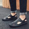 Fashion Leisure Walk Mens Sandals Outdoor Male Wading Aqua Shoes Retro Style Beach Shoes Simple Roman Shoes Casual Leather Summer Flats