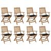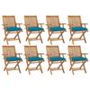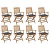 Chaises pliables de jardin avec coussins lot de 8 Teck solide