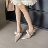 Fashion 2025 Spring New Women's Pointed Thin Heel High Heels Elegant Fashion Bow Designed Half Dragged Comfortable Casual Daily Sandals
