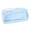 Pencil Pouch Blue Large Capacity Canvas Pen Bag with Transparent Compartment for School Office Travel