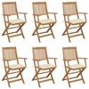 Chaises pliables de jardin lot de 6 avec coussins Bois d'acacia