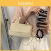 Beading Handwoven Lady Girl Travel Mini Bag Pearl Decor Magnetic Closure Flap