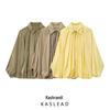 ქალის შემოდგომის აბრეშუმის ატლასის ტექსტურის ბომბერის ქურთუკი მრგვალი საყელოთი, გრძელი სახელოებით, ატლასის ბომბერის ქურთუკი, ქალის ყოველდღიური ზედა ტანსაცმელი