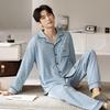 Men's Korean Style Casual Pajama Set - Lightweight Cardigan with Long Sleeves and Trousers for Indoors or Outdoors
