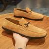 New Shoes for Men Genuine Leather Casual Shoes Spring Autumn Retro Metal Button Flat Skateboard Shoes Slip-on Loafers