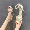 Sexy flower high heels 2025 new fashion thin heel open-toed sandals super high heel temperament hollow large size women's shoes