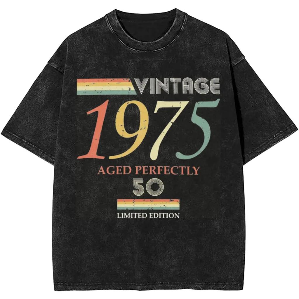 Streetwear Washed T Shirt Vintage 1975 50th Birthday Aged Perfectly Gift Cotton T Shirts Leisure Tshirt for Men Summer