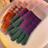 Adult Wool Winter Gloves for Women Japanese and Korean Plaid Outdoor Warm and Cold Proof Plus Velvet Knitted Cycling Full Finger Gloves
