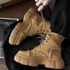 Fashion Men Boot Motorcycle Boots High Top Leather Botas Khaki Lace-Up Casual Height Increase Work Board Shoes Platform Non-slip Sneaker