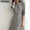შემოდგომის ზამთრის სუსტი მორგებული ნაკეციანი ქვედაბოლო სვიტერი O ყელის მაქმანებიანი მაღალი წელის ნაქსოვი კაბა S-XXL