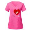 European and American Nurse Caregiver V-Neck Print Shirt with Large Pocket, Short Sleeve T-shirt for Women