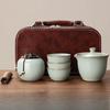Celadon Ge kiln opening film can raise outdoor portable travel tea set, one pot and three cups of Kuaike tea cup gifts