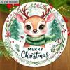 Warm Winter Wooden Christmas Sign with White Elk Pattern - Navidad Round Sign for Balcony, Front Door, Wall Hanging Decor - Ideal Christmas Decoration
