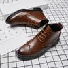 Italian Style Men's High Top Brogue Shoes Trend Design Men's Workwear Shoes Winter New Ankle Boots Lace Up Pointed Style