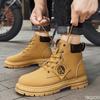 2024 New Men's Boots Fashion Motorcycle Men's Ankle Boots New Brown Military Boots Lacing Top Grade Men's Shoes Gao Bang
