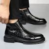 Fashion New leather side zipper boots, genuine leather motorcycle boots, height increasing mid top Chelsea short boots for men