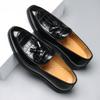 Fashion Red Brown Personalized Korean Style Crocodile Leather Casual Slip on Non-slip Men's Glossy Finish Tassel Loafer Leather Shoes