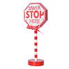Christmas Street Sign Light with Bowknot Santa Stop Here North Pole Letter Vintage Reusable Xmas Holiday Decoration Desktop Guideboard LED Lamp