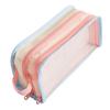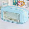 Pencil Pouch Blue Large Capacity Canvas Pen Bag with Transparent Compartment for School Office Travel