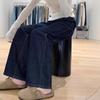 Women's Plus Size High Waist Dark Blue Wide Leg Jeans - Autumn Slimming Straight Leg Pants for Pear-Shaped Body.