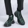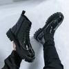 Moda Botas Masculinas de Couro Brilhante Zíper Lateral Negócios Novo Estilo Confortável Cano Alto Sapatos Casuais Masculinos Design Clássico Sapatos de Sola Grossa