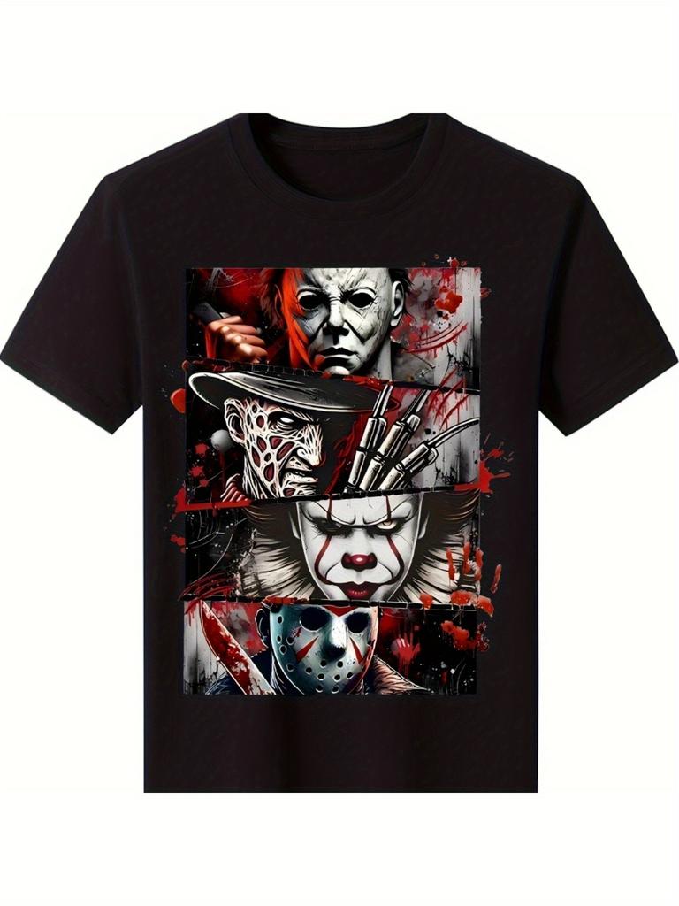 Men's 100% Cotton Horror Icons Graphic T-Shirt Black Short Sleeve Casual Streetwear Tee Jason Freddy Michael Myers Digital Print
